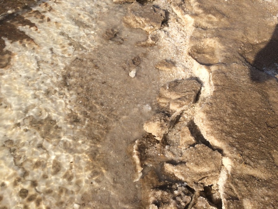 Salt along the bank of the dead sea.